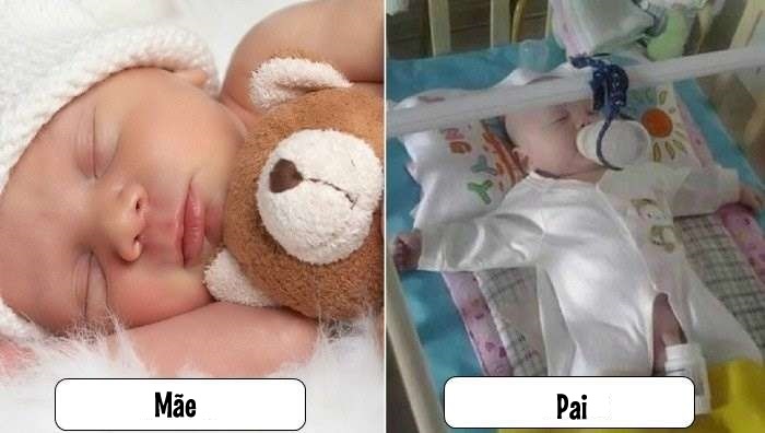 Eu quase tive um treco de tanto rir montando esse post com essas fotos, é claro que é só uma brincadeira e uma forma divertida e um pouco exagerada para mostrar as diferenças de quando os filhos estão com as mães e quando estão com os pais…